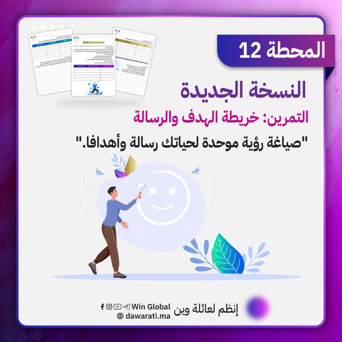 ⛔️اكتشف محرك حياتك الحقيقي وصغ رؤية موحدة تمنح كل يوم في حياتك معنى. 📚في هذه الورشة تتعلم: ✅️استكشاف الشغف: التعرف على الأنشطة التي تمنحك الحماس والرضا العميق. ✅️صياغة الرسالة: ربط مواهبك وقدراتك بقيمك لتحديد دورك ورسالتك في الحياة. ✅️التطبيق العملي: وضع خطوات صغيرة ومستمرة لتحويل شغفك إلى واقع ملموس. 🤗انضم الآن لورشة النسخة الجديدة، حدد بوصلتك وانطلق نحو مستقبلك برؤية واضحة وهدف عظيم