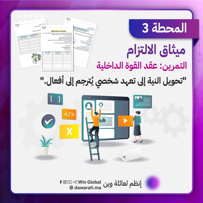 ⛔️حوّل نيتك من مجرد أمنية إلى تعهد شخصي يُصاغ بالأفعال والنتائج. 📚في هذه الورشة تتعلم: ✅️تحطيم القيود: تحديد المعتقدات السلبية التي تسلبك قوتك وتمنعك من التقدم. ✅️إعادة البرمجة: تحويل العوائق الذهنية إلى معتقدات تمكينية تمنحك الجرأة للتحرك. ✅️صياغة الميثاق: كتابة عقد قوتك الداخلية ليكون دليلك اليومي نحو حياة واعية وقوية. 🤗انضم الآن لورشة ميثاق الالتزام، لا تترك مستقبلك للصدفة.. وقع ميثاق قوتك اليوم وكن أنت الفائز.