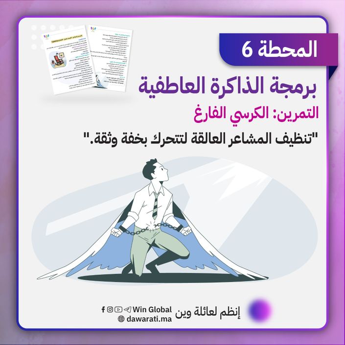 ⛔️نظف مشاعرك العالقة وتحرر من أثقال الماضي لتتحرك نحو مستقبلك بخفة. 📚في هذه الورشة تتعلم: الوعي العاطفي: ✅️اكتشاف المشاعر الحقيقية التي شكلتها أحداث حياتك منذ الطفولة. ✅️جرد الجروح: فهم أصول المشاعر التي تؤثر على قراراتك وعلاقاتك الحالية. ✅️تقنيات التحرر: ممارسة أدوات التشافي الذاتي للوصول إلى حالة من السلام الداخلي. 🤗انضم الآن لورشة برمجة الذاكرة العاطفية، توقف عن العيش في الماضي وابدأ فصلاً جديداً من الحرية.
