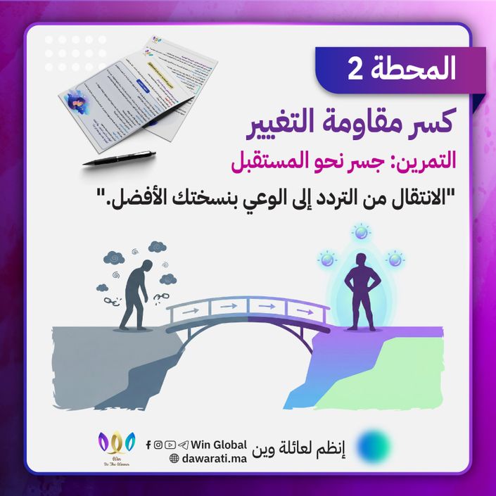 ⛔️اكسر القيود غير المرئية التي تشدك للوراء، 👏وابدأ رحلة العبور من منطقة الراحة إلى فضاء القوة والإنجاز. 📚في هذه الورشة تتعلم ✅️تحليل المقاومة: تحديد جذور الخوف والتردد المتراكم في "نسختك القديمة" الذي يعيق تقدمك نحو الأفضل. ✅️استخراج القوة: تحويل تجاربك السابقة إلى أدوات قوة داخلية تدفعك نحو التغيير الإيجابي. ✅️العبور الذهني: تقنيات ترسيخ الوعي بنسختك الأفضل والمستعدة لصناعة المستقبل بكل ثقة وجرأة. 🤗انضم الآن لورشة كسر مقاومة التغيير؛ توقف عن مقاومة نموك، وابدأ في برمجة عقلك للنجاح.