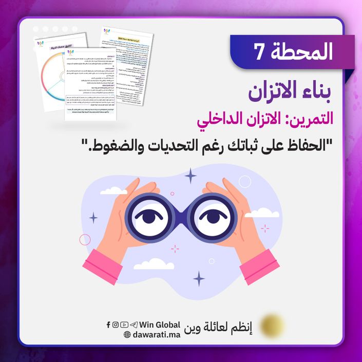 ⛔️اكتشف الطريقة التي ترى بها عالمك وحقق الثبات الداخلي رغم كل التحديات. 📚في هذه الورشة تتعلم: ✅️اختبار العدسات: تحديد نظرتك الحالية للواقع ومعرفة مدى توازنك النفسي. ✅️تصحيح الرؤية: التخلص من تضخيم السلبيات أو الإنكار لاتخاذ قرارات مبنية على الحقائق. ✅️الاتزان المستدام: تعزيز الوعي الذاتي لتحسين علاقاتك وصحتك النفسية بكل ألوانها. 🤗انضم الآن لورشة بناء الاتزان، اكتشف عدساتك الحقيقية اليوم واصنع توازنك الذي لا يتزعزع.