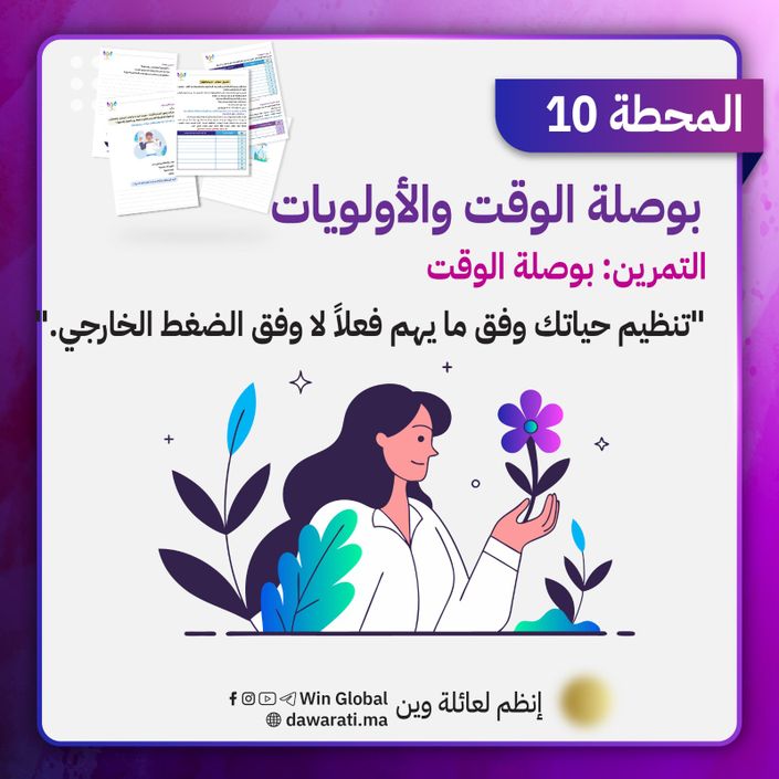 ⛔️استعد سيادتك على وقتك وتوقف عن الركض في المهام العاجلة غير المهمة 📚في هذه الورشة تتعلم: ✅️جرد الطاقة: التعرف على أين يذهب وقتك فعلياً وتصنيف أنشطتك بين النمو والمشتتات. ✅️تطبيق المصفوفة: التمييز بين المهم والعاجل لاستثمار طاقتك في الإنجاز الحقيقي. ✅️الأسبوع الذكي: تصميم جدول يوازن بين العمل، الراحة، وتطوير الذات بذكاء. 🤗انضم الآن لورشة بوصة الوقت، توقف عن إهدار أثمن ما تملك وابدأ العيش وفق أولوياتك الحقيقية.