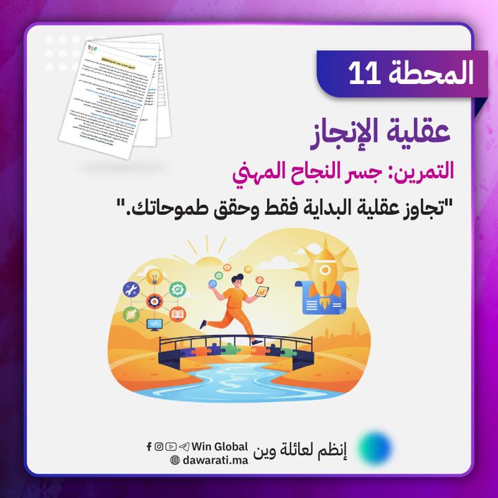 ⛔️حوّل طموحاتك من مجرد خيال إلى واقع مهني ملموس عبر سد فجوة المهارات 📚في هذه الورشة تتعلم: ✅️انسجام الفكرة: كيف تختار مساراً مهنياً يتوافق مع قيمك وشغفك الشخصي. ✅️بناء المهارات: تحديد الأدوات الأساسية كالتواصل والإبداع التي تحتاجها لإنجاح فكرتك. ✅️خريطة العبور: وضع خطة عمل لردم الفجوة بين وضعك الحالي وإنجازك المطلوب. 🤗انضم الآن لورشة عقلية الإنجاز، ابنِ جسر نجاحك اليوم وحوّل بذور أفكارك إلى ثمار حقيقية.